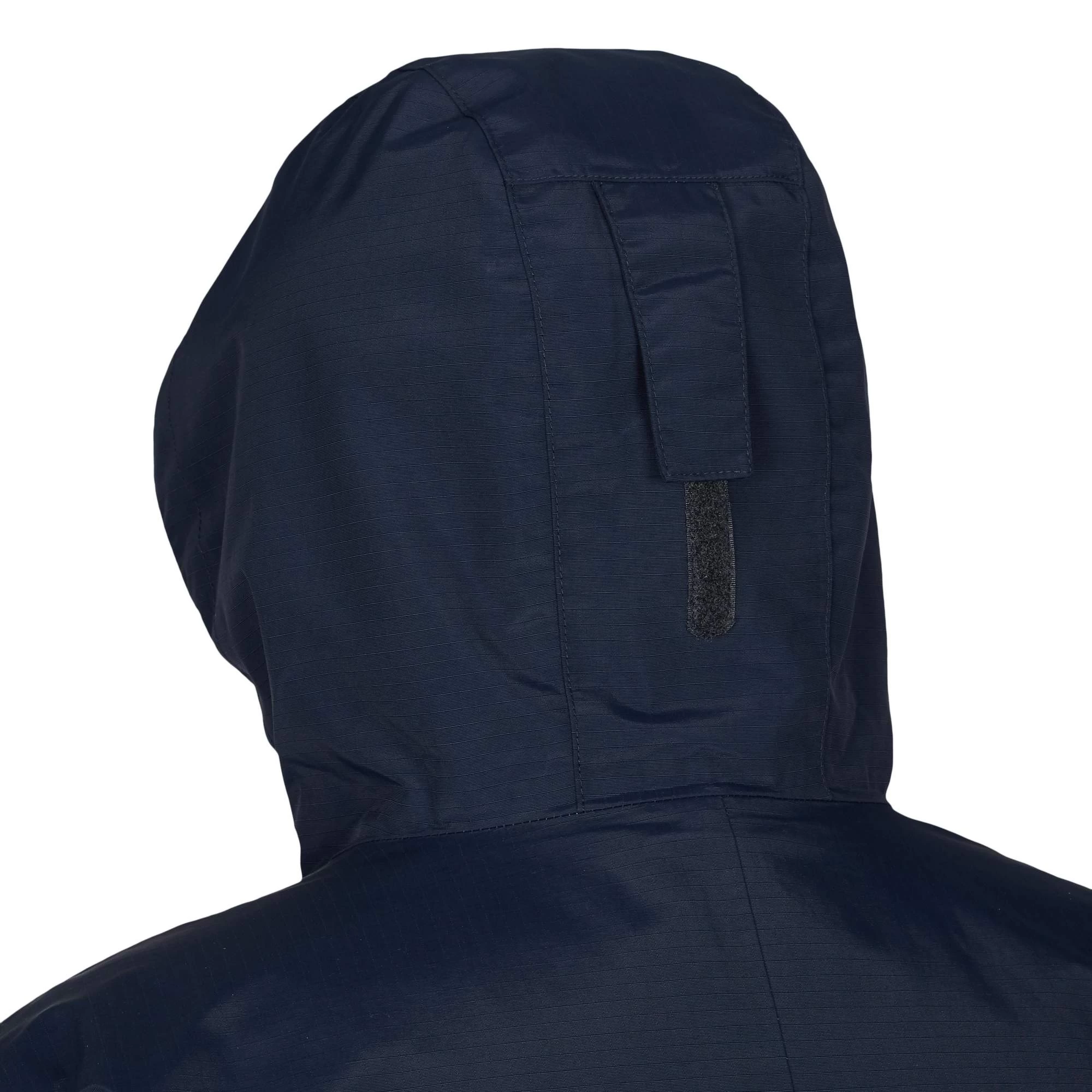 - Kapuze vorne regulierbar per Schnürzug, hinten regulierbar per Klett